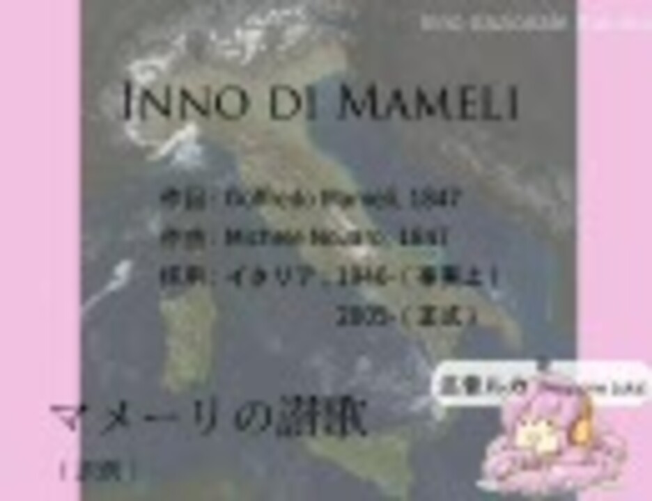 外国国歌の歌詞を知らない無知極まりない愚かな人達だ といえます。 誇りを以って堂々と声高らかに歌っていい日本の国歌であります。 ついでに言いたいのは、 誕生日の歌 です。"マメーリの賛歌" Inno di Mameliイタリア語/ 日本語歌詞マメーリの賛歌(マメーリのさんか、Inno di Mameli)、あるいはイタリア人達の唱歌